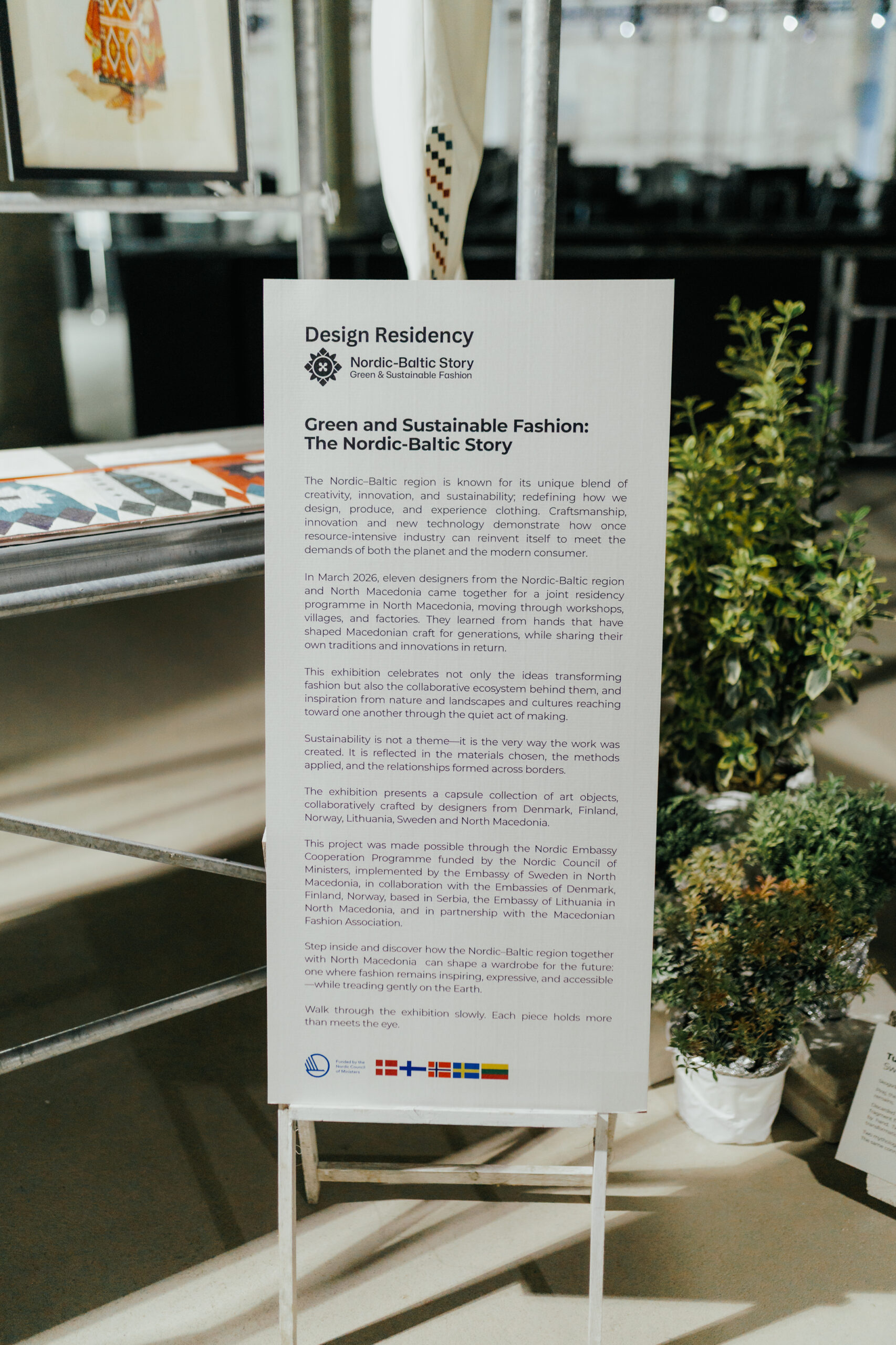 Меѓународната дизајнерска резиденција „Зелена и одржлива мода: Нордиско-балтичка приказна“, иницирана од Амбасадата на Шведска во нашата земја и реализирана во партнерство со Канцеларијата на Амбасадата на Литванија, Амбасадите на Данска, Финска и Норвешка, Македонското модно здружение и со поддршка на Нордискиот совет на министри, не остана на ниво на концепт. Таа се случи низ необичен процес.