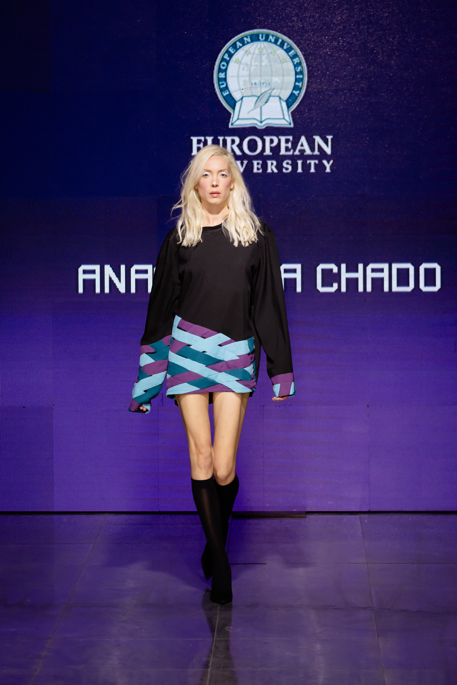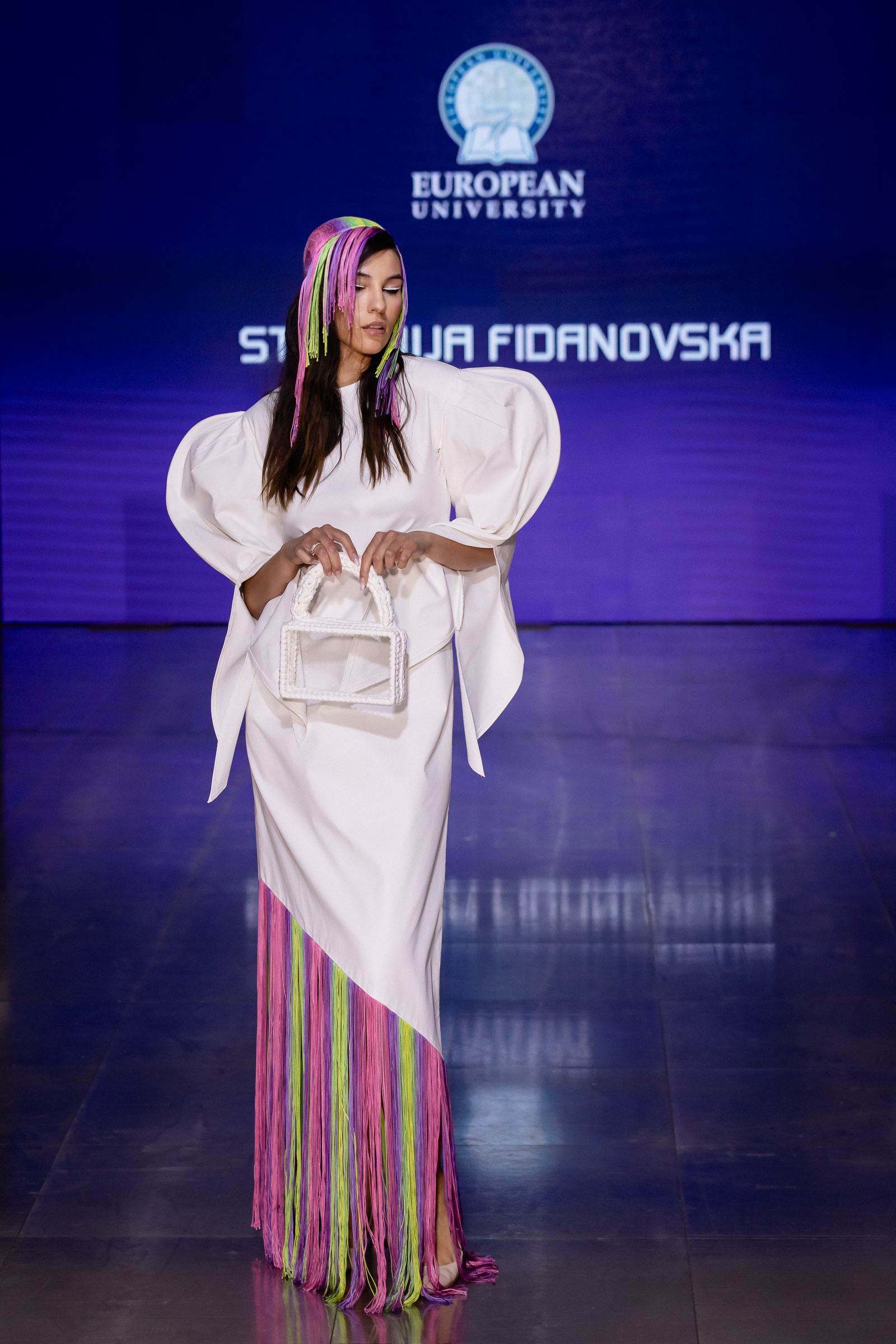 Модните шоуа започнаа со КАЛЕИДОСКОП – спој на млада визија и одржливост. Тоа беше амбициозна презентација од Факултетот за арт и дизајн на Европскиот универзитет Скопје. Според насловот, овој сегмент го надмина традиционалното шоу на модните писти, нудејќи панорамски поглед на иднината на модата како што е замислена од следната генерација дизајнери. Со фокус што се движи од итно релевантниот наратив за одржливост до нијансираното истражување на културното наследство преку уметноста, колекцијата на младите сили кои се сѐ уште во студентските предавални, стои како лабораторија на различности и иновации.